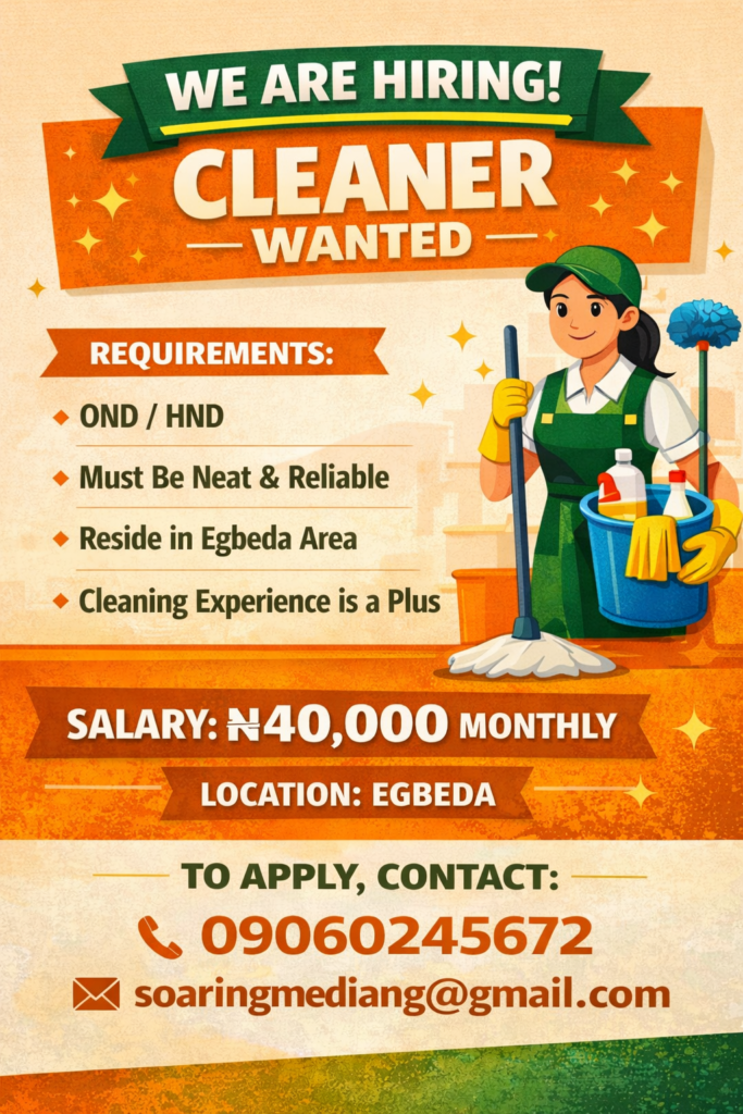 Our client, Refreshia Ltd – A Fruit Juice Production Company based in Egbeda, Alimosho Lagos is currently in need of a Cleaner to maintain a clean and hygenic factory environment