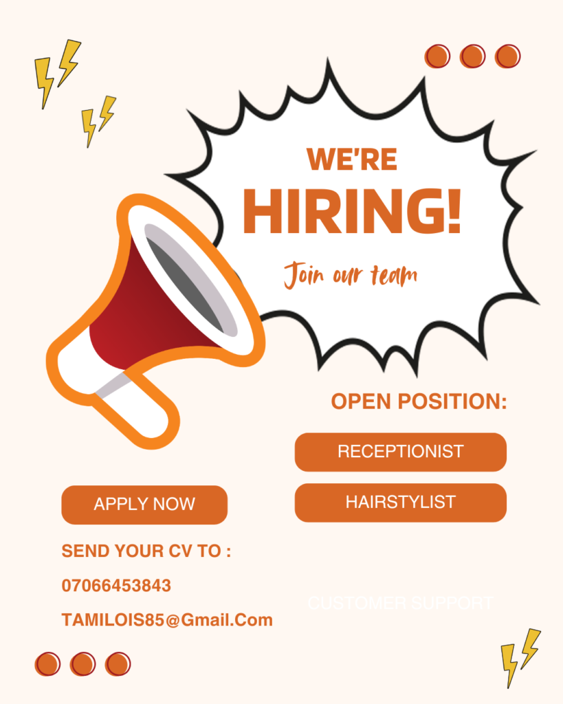 Send your CV and cover letter to TAMILOIS85@gmail.com or 07066453843